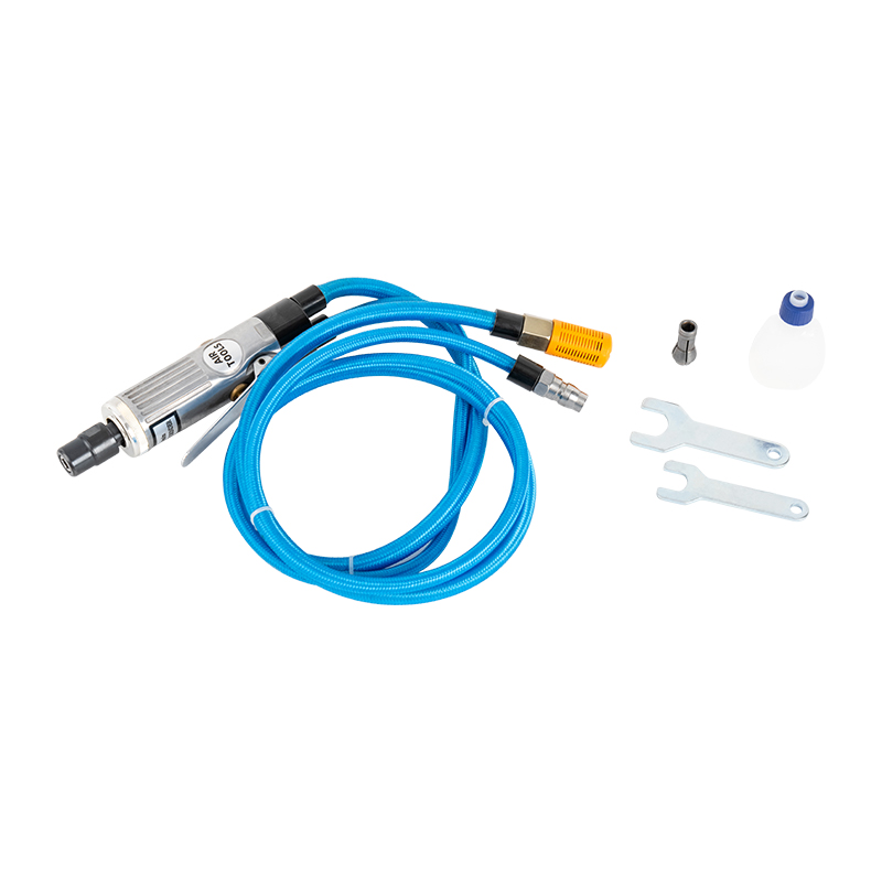 De luchtinlaat van deze pneumatische snelheid-verstelbare molen is ontworpen met een standaard 1/4-inch PT-draad om een naadloze verbinding met de luchtbroninterface van pneumatische gereedschappen te garanderen. Dit ontwerp verbetert niet alleen de compatibiliteit van de tool, maar vereenvoudigt ook het verbindingsproces en verbetert het gebruiksgemak. Tegelijkertijd bereikt de binnendiameter van de luchtinlaatpijp 3/8 inch, waardoor voldoende luchttoevoer wordt gewaarborgd, waardoor het continue werkvermogen en de stabiliteit van het gereedschap wordt verbeterd, waardoor het nog steeds goede prestaties kan behouden onder bewerkingen met een hoge intensiteit.